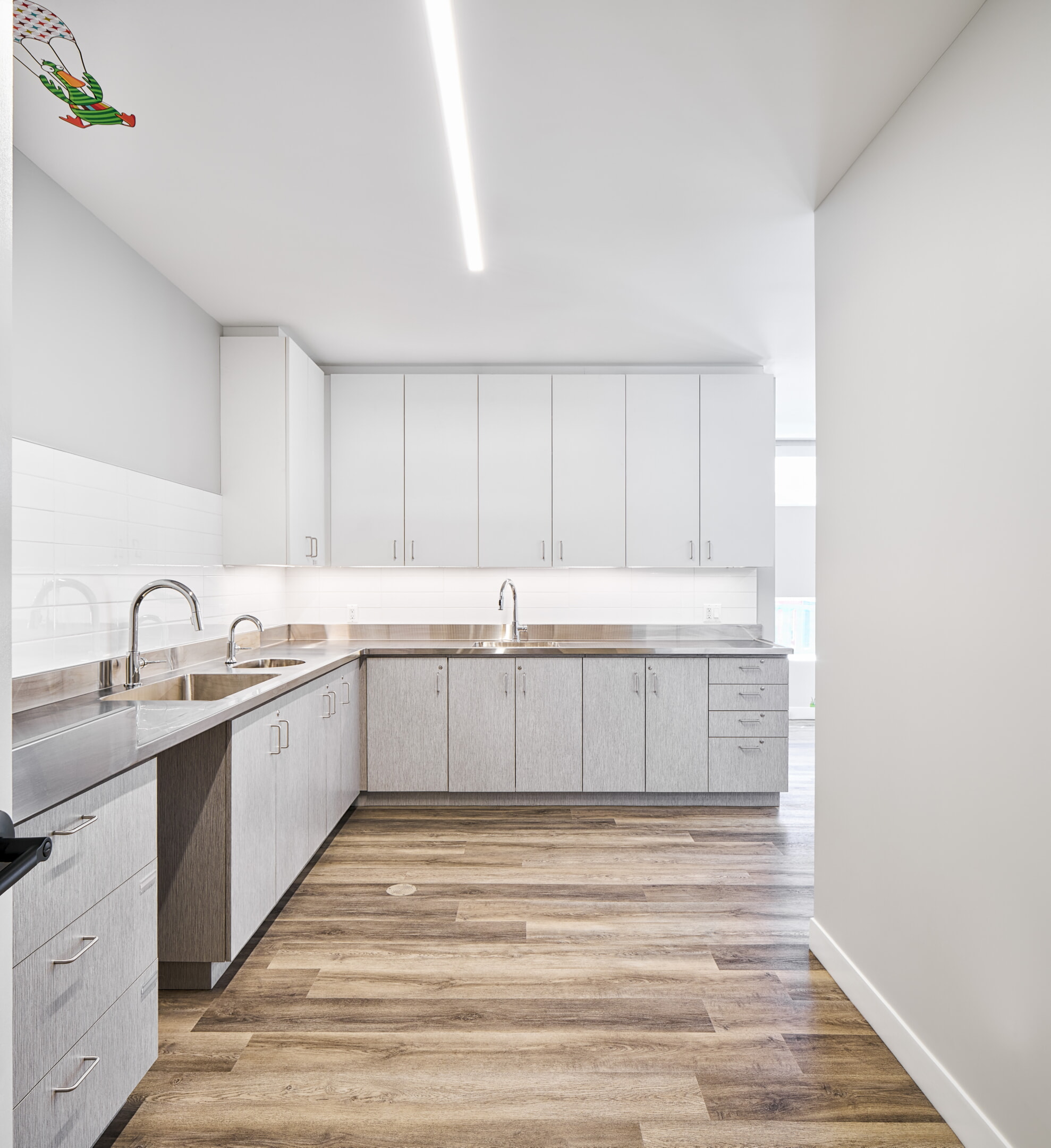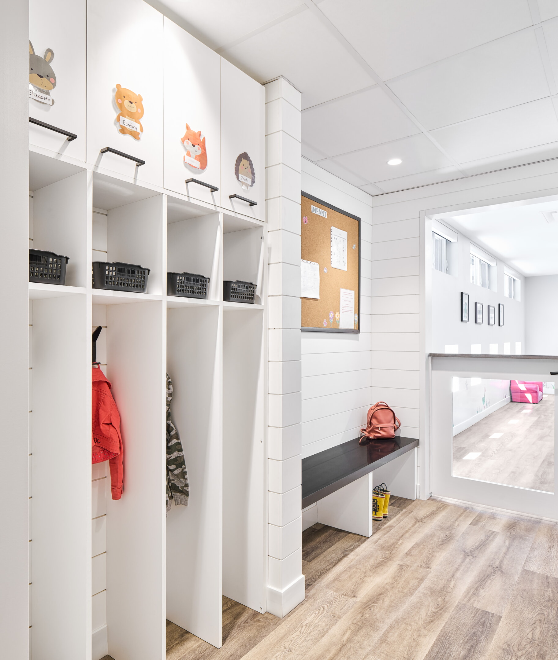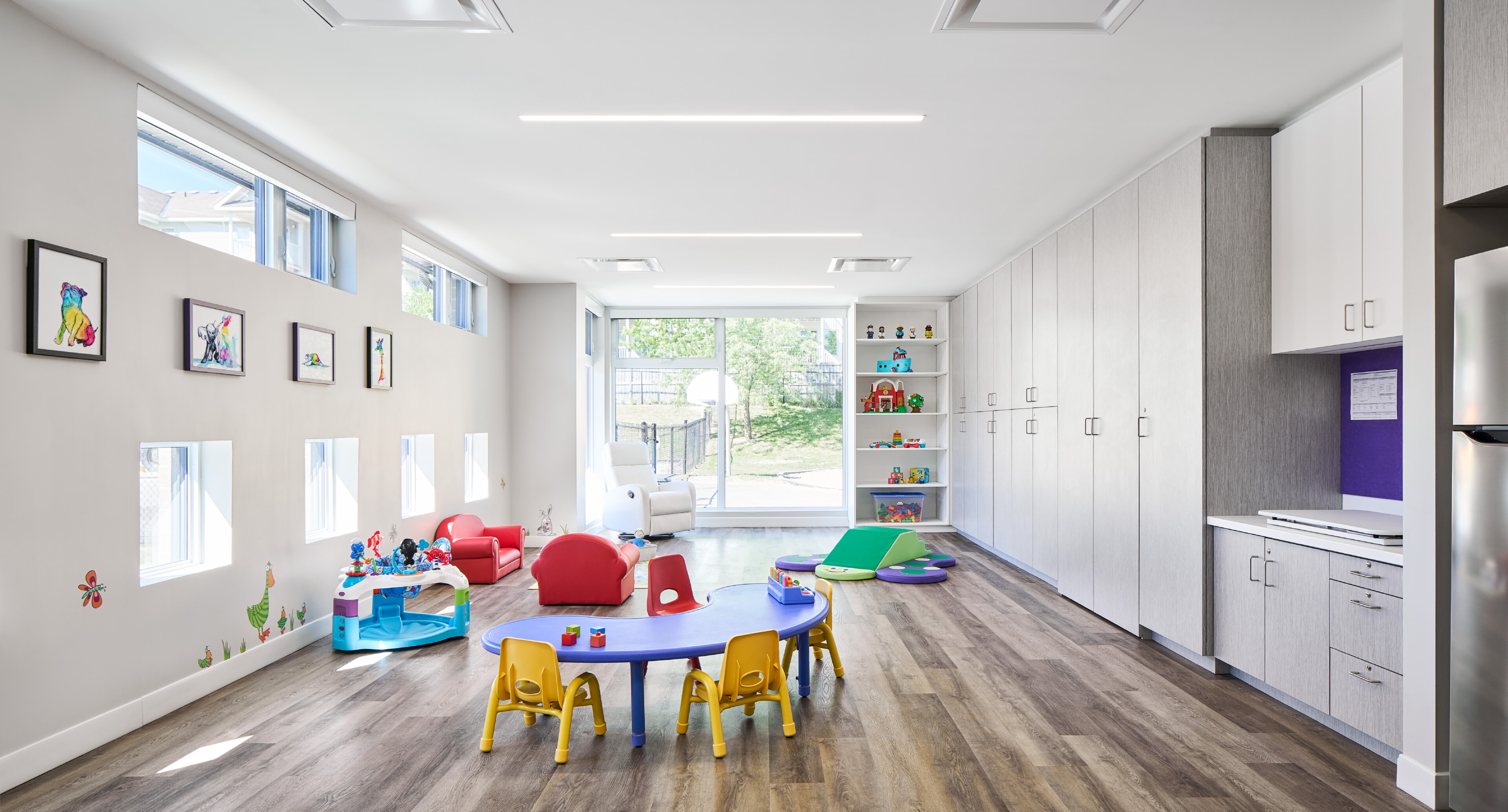 The modern interior of the City View Centre daycare was designed by Parallel 45 Design Group, while the building itself was designed by Colizza Bruni Architects.