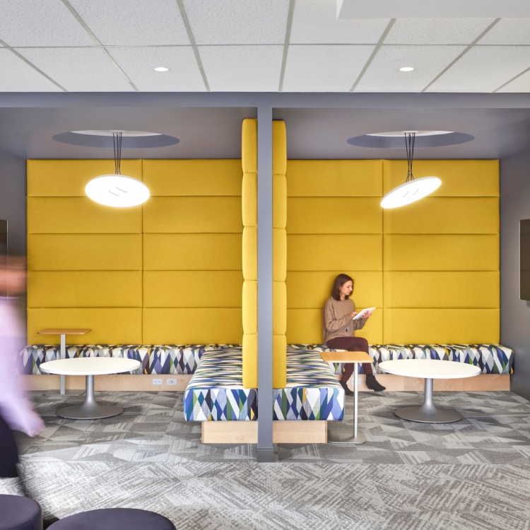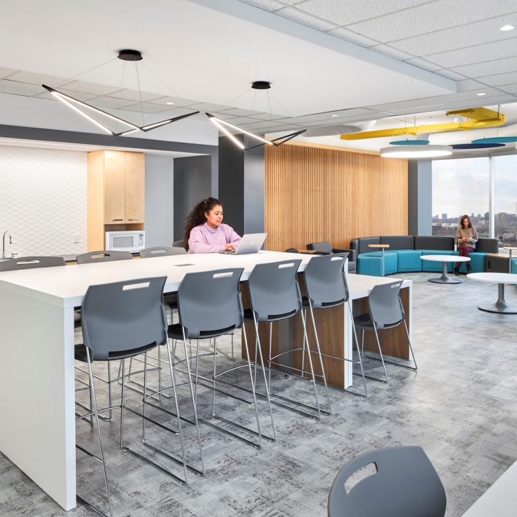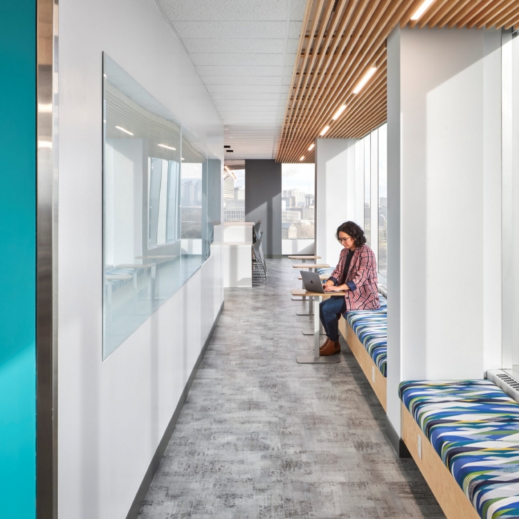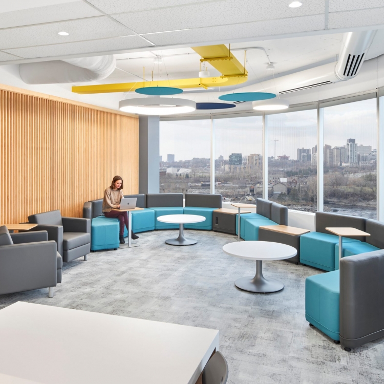 The goal of the GC Workplace project is to end the stereotype that government office buildings have to be drab, boring, and lined with fluorescent troffers. LWG Architectural Interiors designed this dynamic space to tailor to the workers’ tasks and activities at hand.