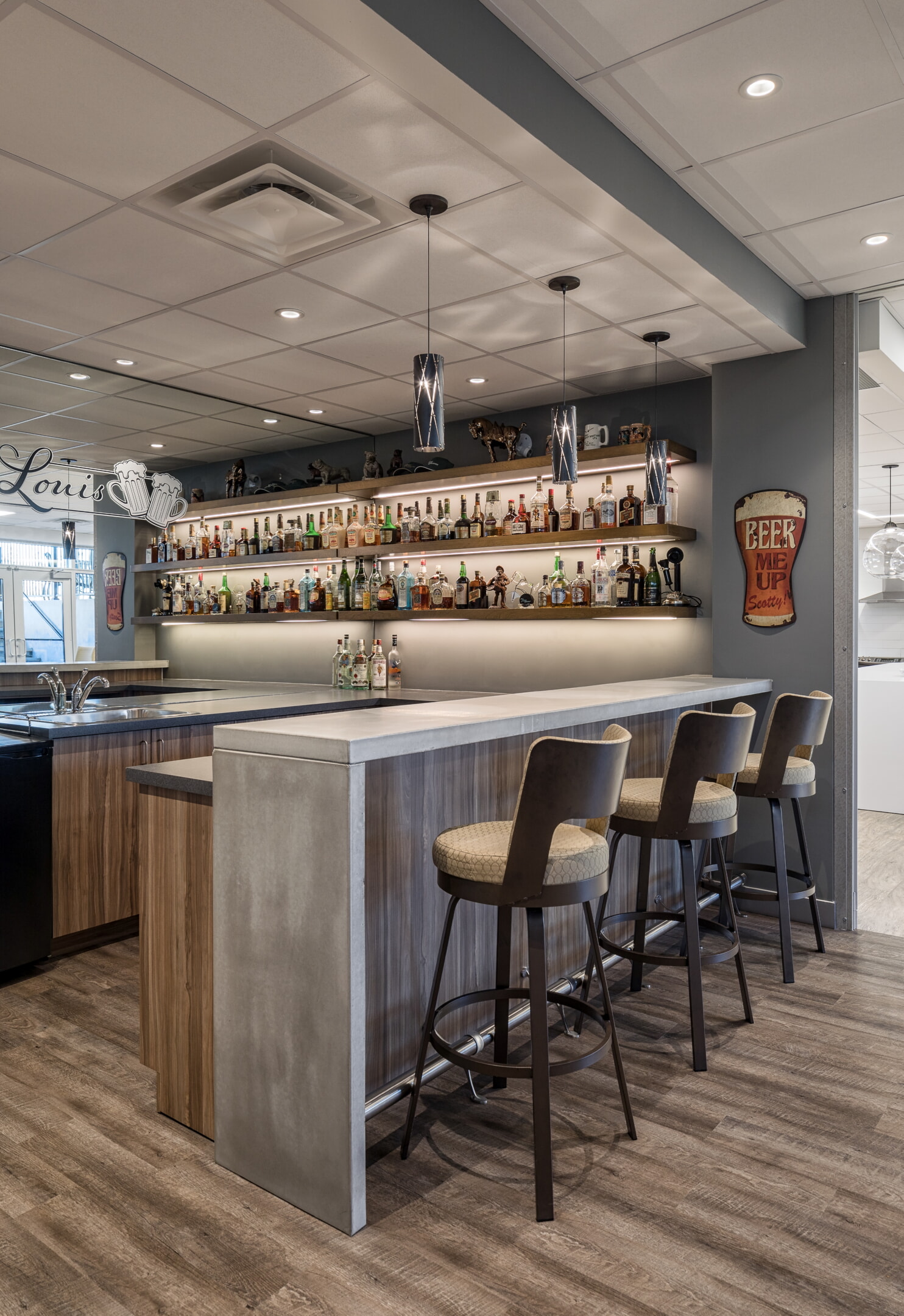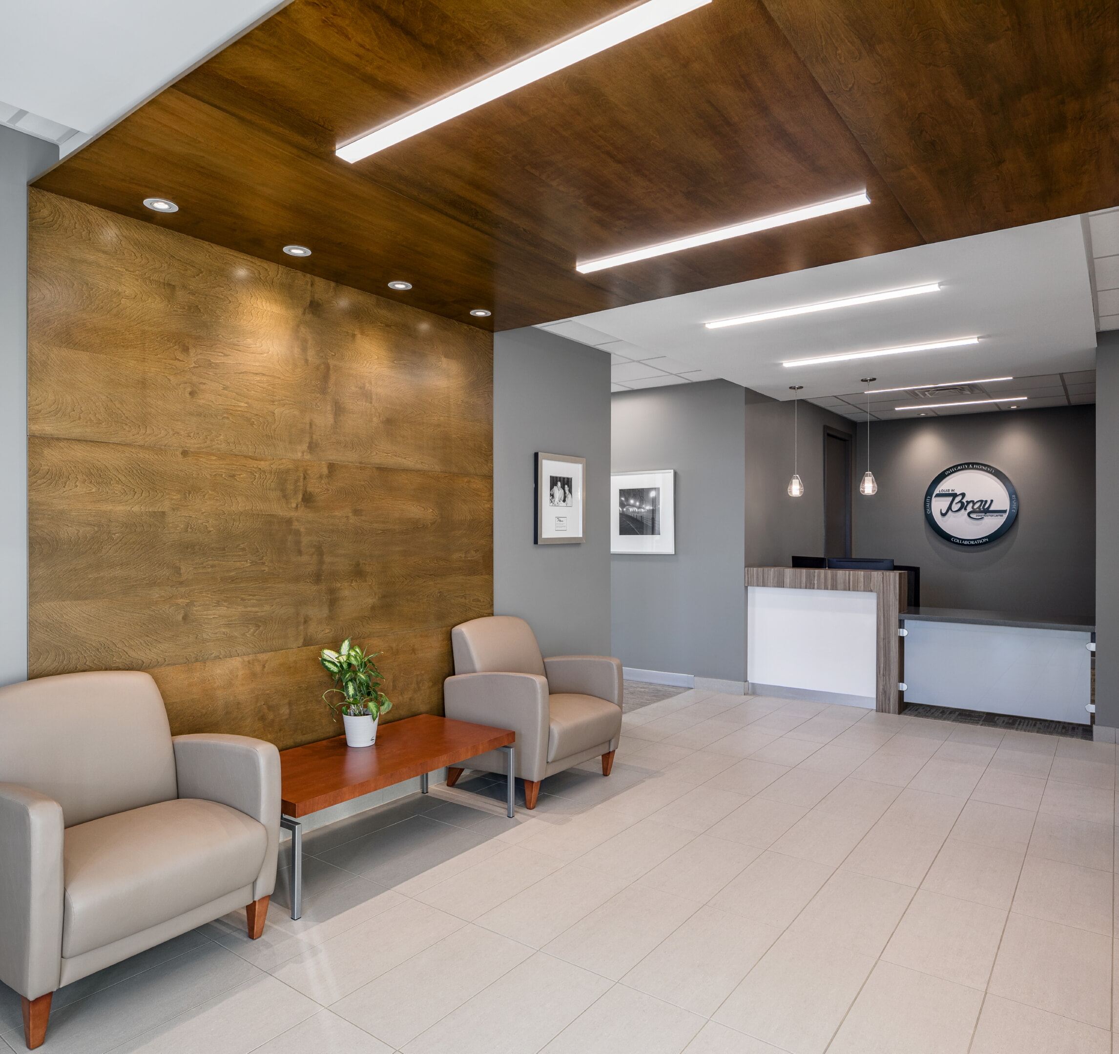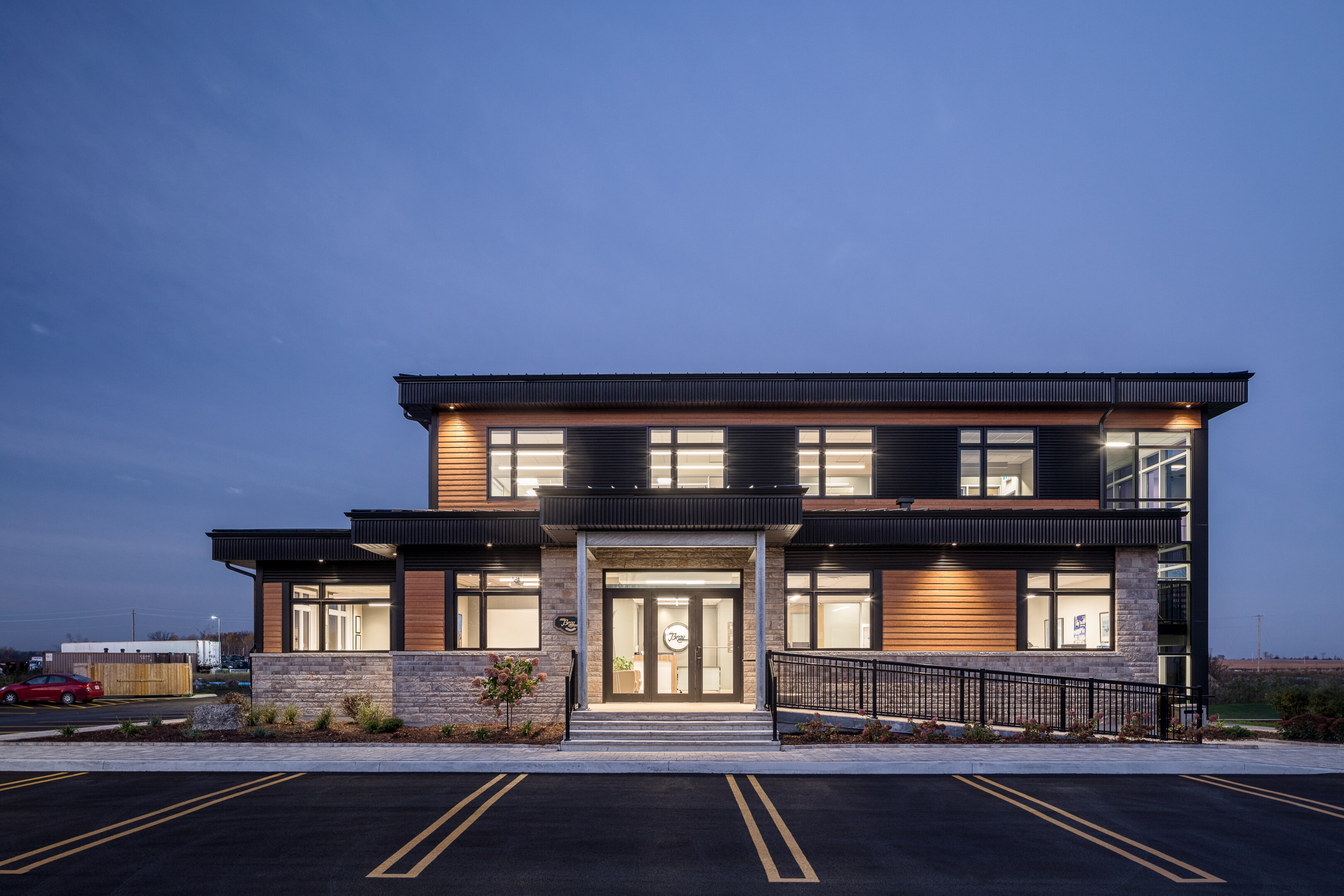 Interior and exterior lighting for Louis W. Bray Construction. Project by Parallel 45 Design Group Ltd.
