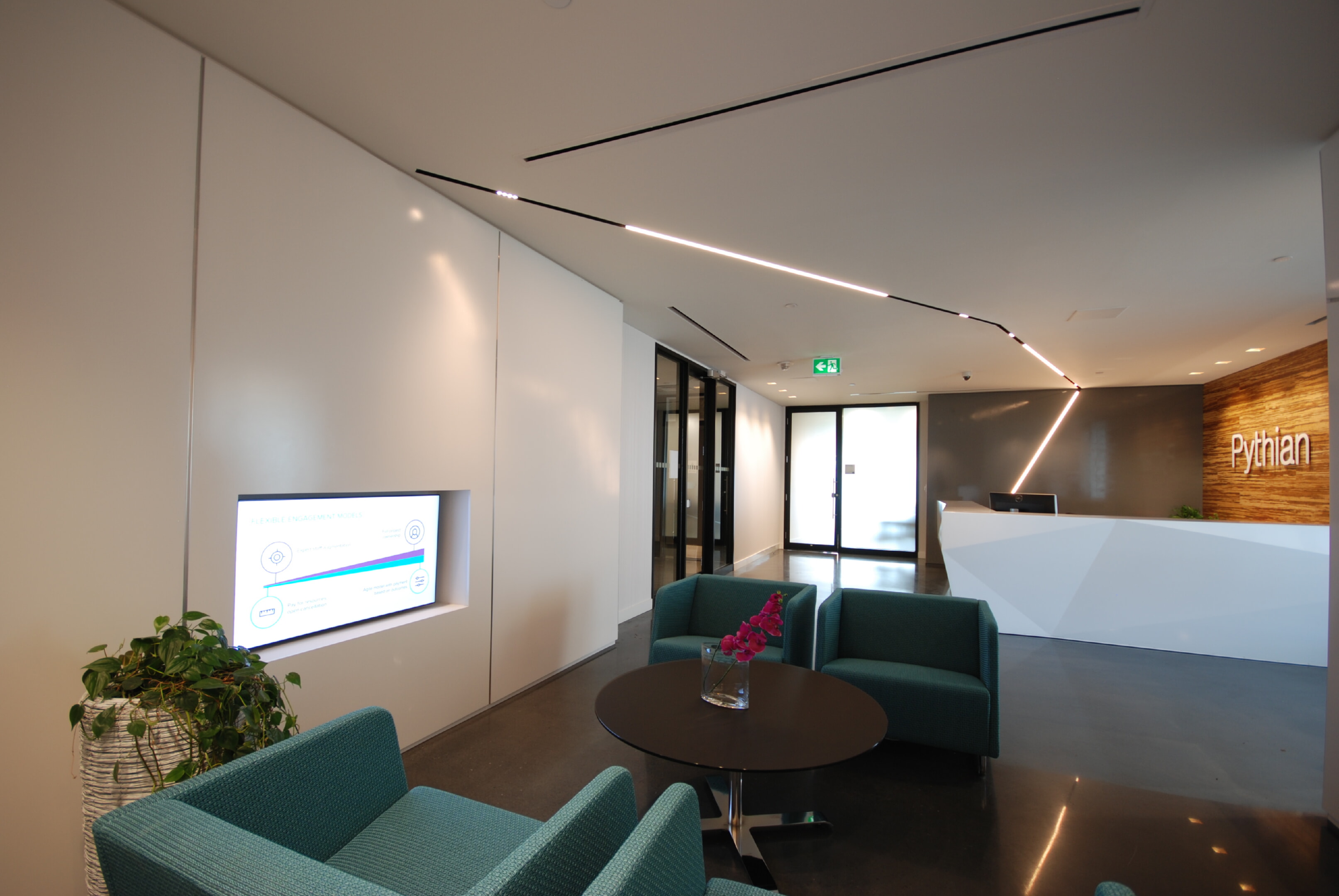 In collaboration with 4té Inc, Flux worked on the lighting for Pythian, a global IT services company that helps businesses adopt disruptive technologies to advance innovation and increase agility. This office is equipped with trendy lines of light as well as custom-crafted fixtures that emphasize the modern feel of the space.